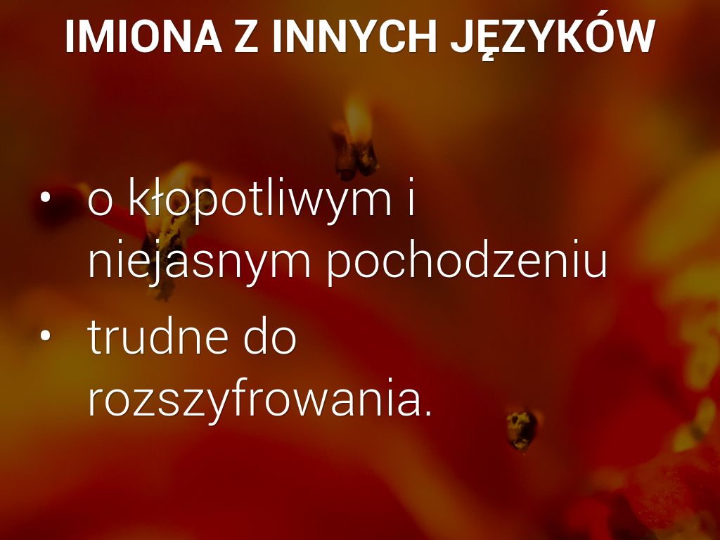 Imiona w języku polskim mają różne pochodzenie, niektóre z nich wymyślili nasi słowiańscy przodkowie, a inne w późniejszych czasach zapożyczyliśmy z innych kultur.