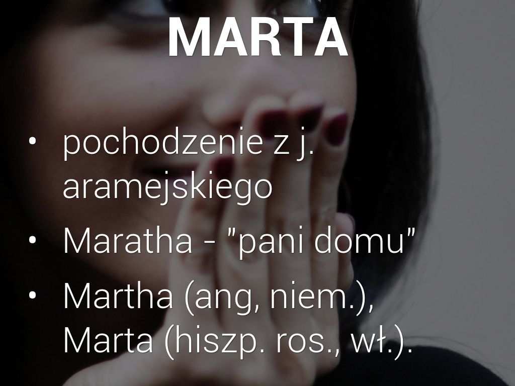 Martha (ang, niem.), Marta (hiszp. ros., wł.).