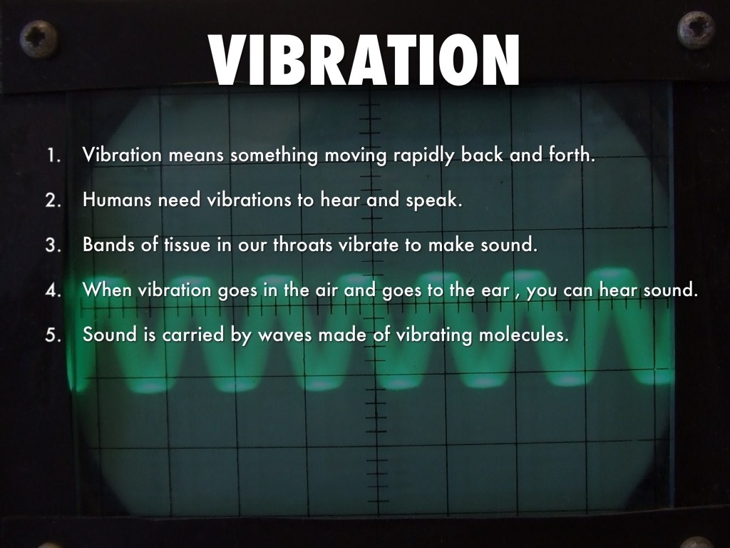 - When vibration goes in the air and goes to the ear , you can hear sound.