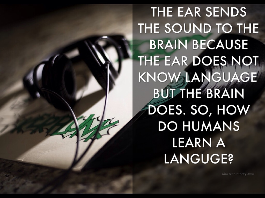 THE EAR SENDS THE SOUND TO THE BRAIN BECAUSE THE EAR DOES NOT KNOW LANGUAGE BUT THE BRAIN DOES. SO, HOW DO HUMANS LEARN A LANGUGE?