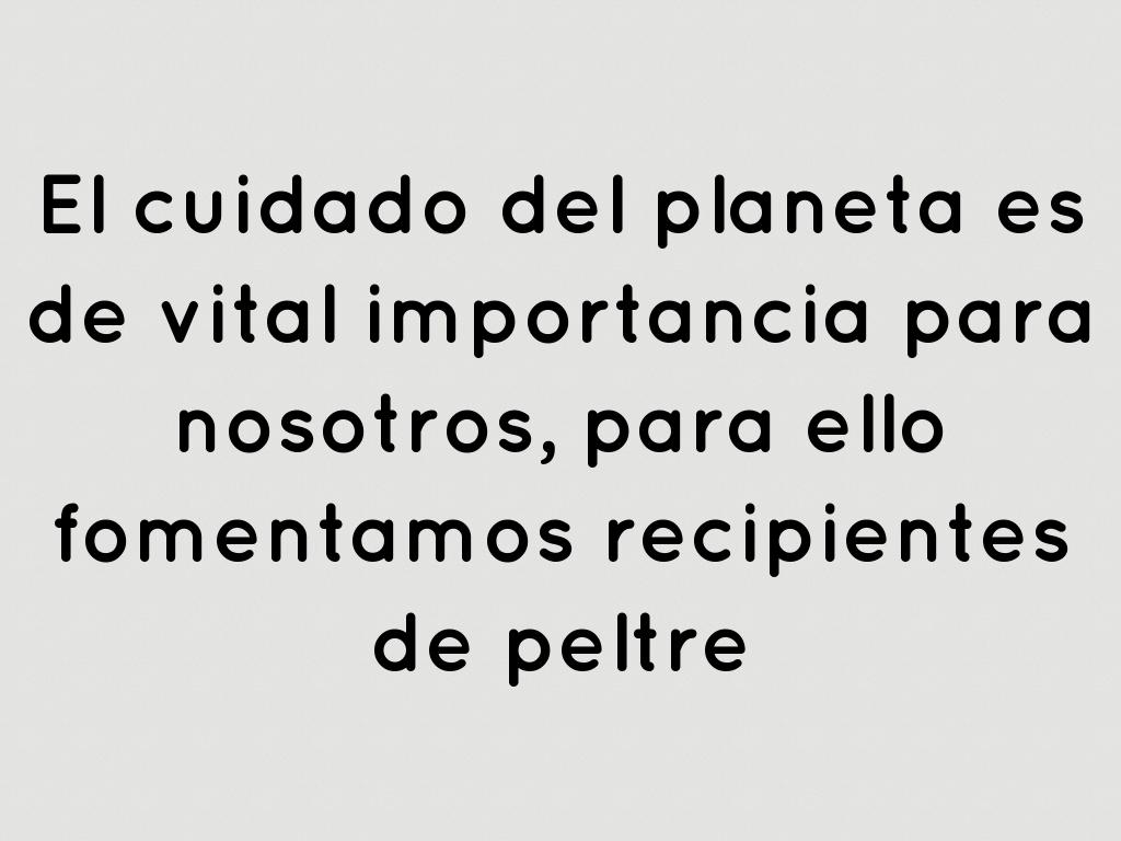 El cuidado del planeta es de vital importancia para nosotros, para ello fomentamos recipientes de peltre