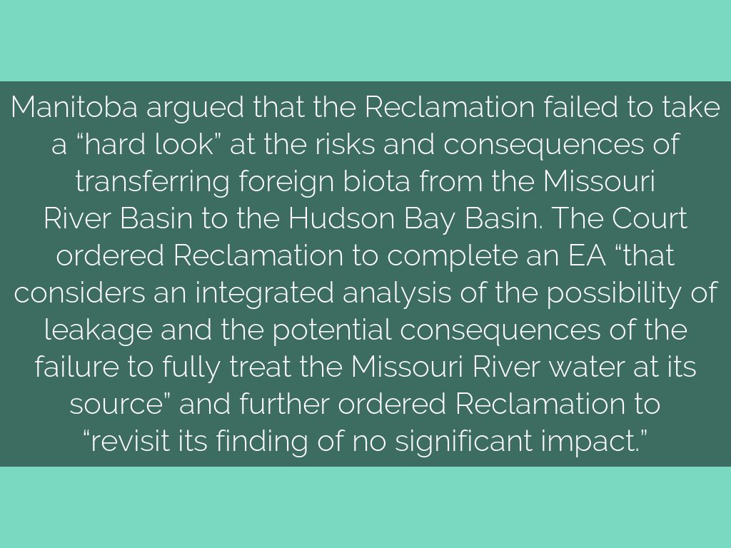 Dakota intervened as a Defendant. Manitoba argued, inter alia, that Reclamation was arbitrary and