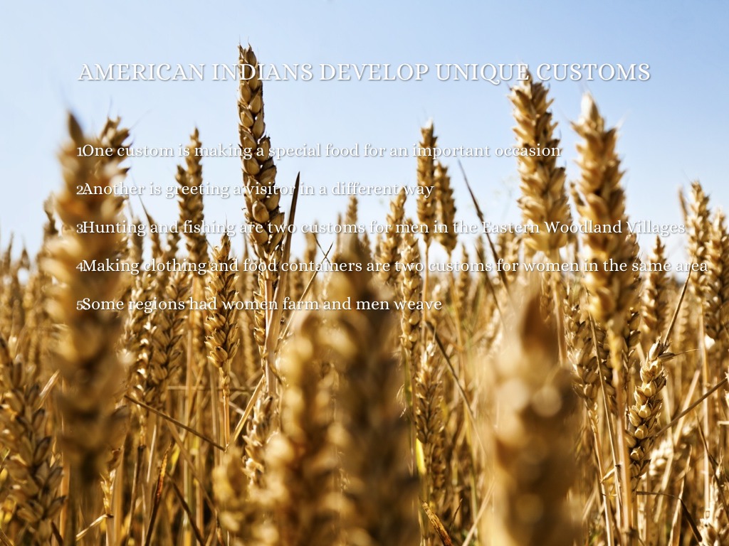 AMERICAN INDIANS DEVELOP UNIQUE CUSTOMS
