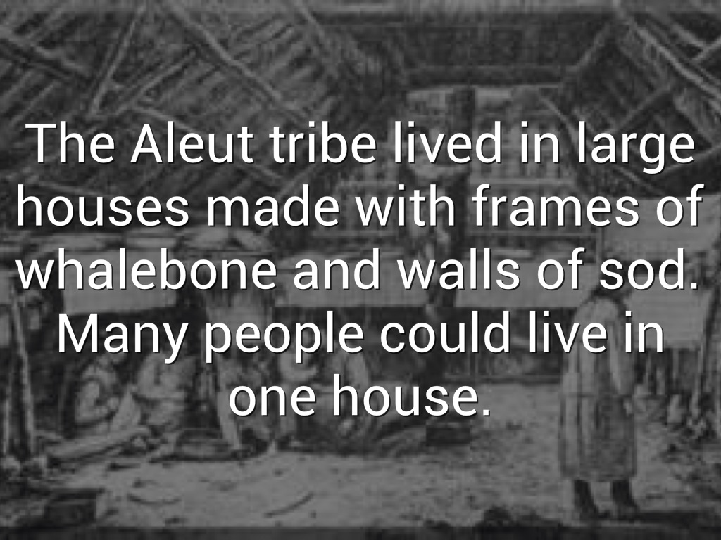 The Aleut tribe lived in large houses made with frames of whalebone and walls of sod. Many people could live in one house.