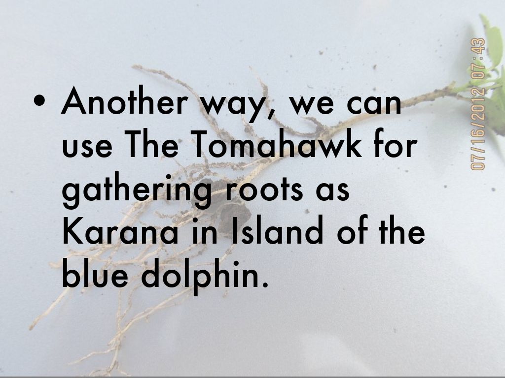 Another way, we can use The Tomahawk for gathering roots as Karana in Island of the blue dolphin.