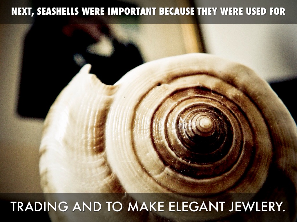 NEXT, SEASHELLS WERE IMPORTANT BECAUSE THEY WERE USED FOR