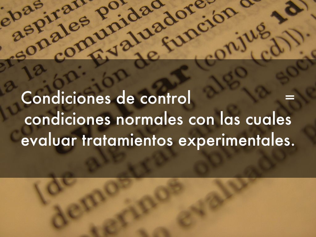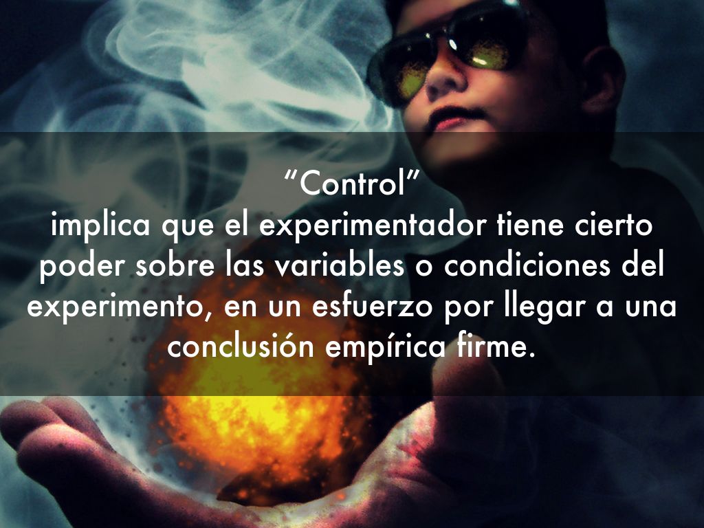 “Control” implica que el experimentador tiene cierto poder sobre las variables o condiciones del experimento, en un esfuerzo por llegar a una conclusión empírica firme.