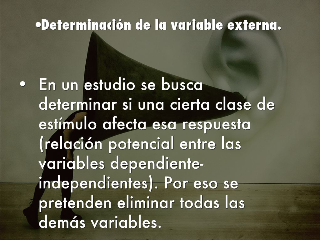 En un estudio se busca determinar si una cierta clase de estímulo afecta esa respuesta (relación potencial entre las variables dependiente-independientes). Por eso se pretenden eliminar todas las demás variables.