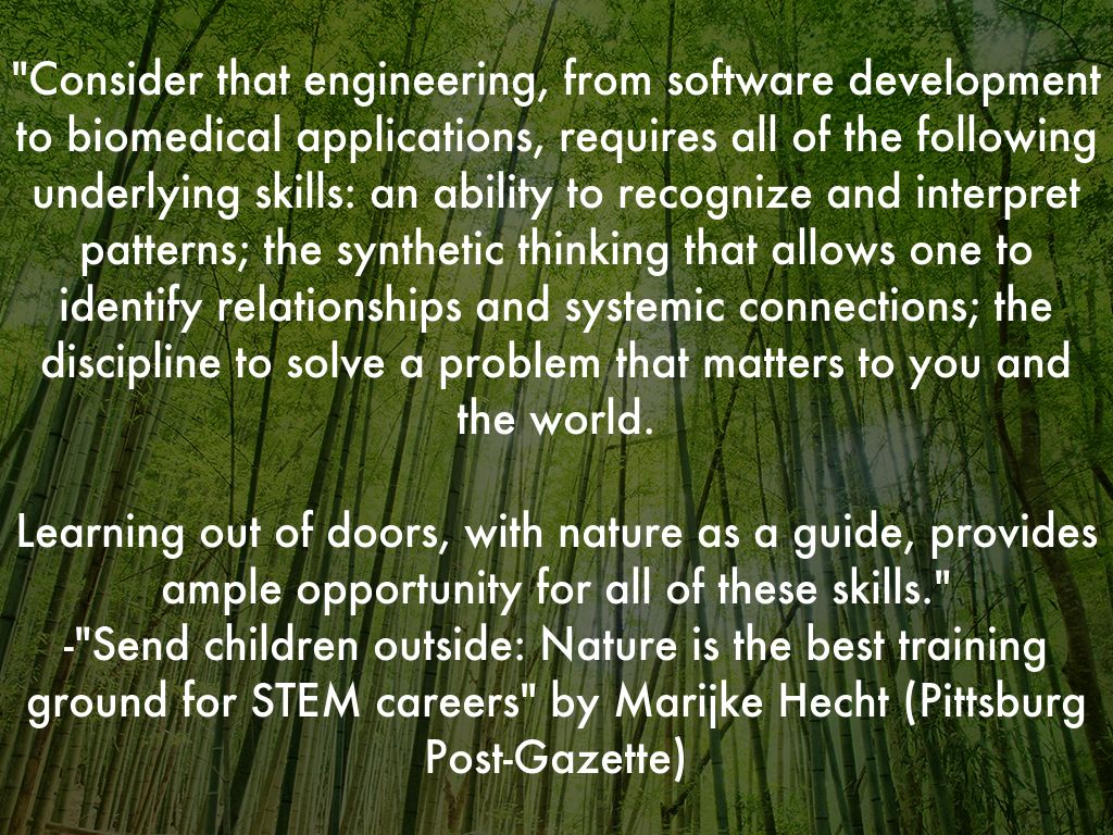 -"Send children outside: Nature is the best training ground for STEM careers" by Marijke Hecht (Pittsburg Post-Gazette)