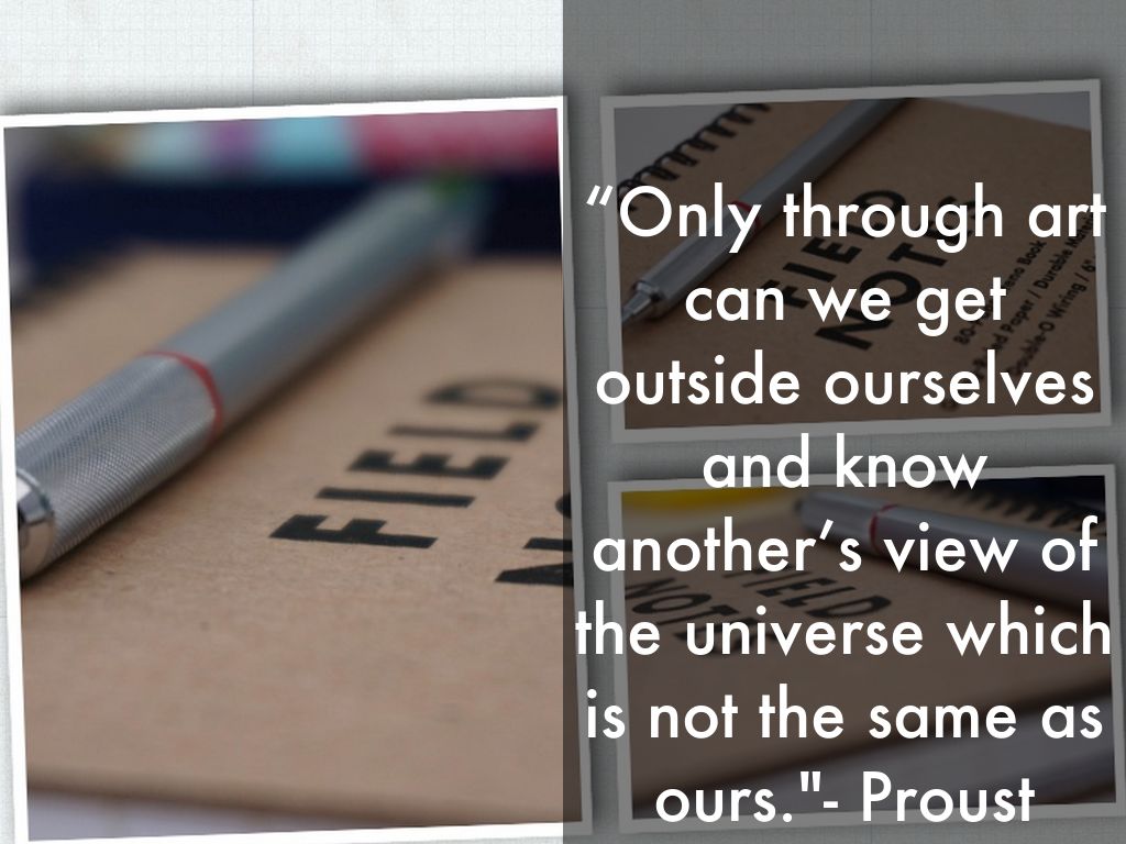 “Only through art can we get outside ourselves and know another’s view of the universe which is not the same as ours."- Proust