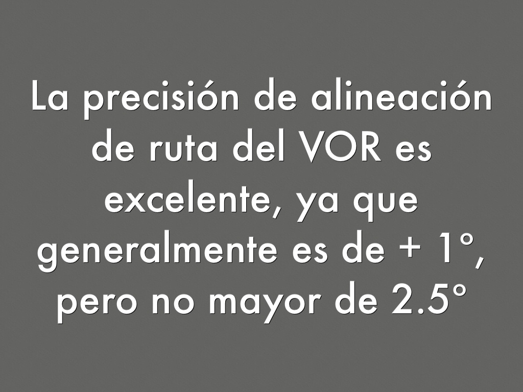 La precisión de alineación de ruta del VOR es excelente, ya que generalmente es de + 1º, pero no mayor de 2.5º