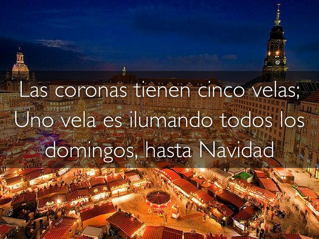 Las coronas tienen cinco velas; Uno vela es ilumando todos los domingos, hasta Navidad