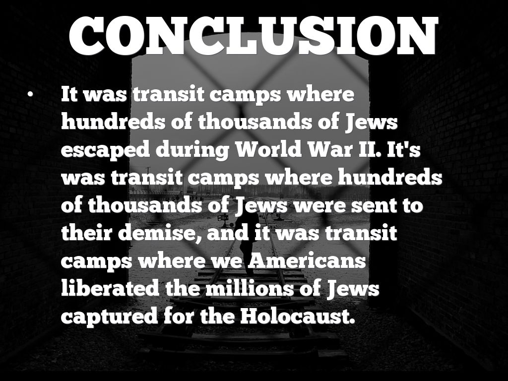 It was transit camps where hundreds of thousands of Jews escaped during World War II. It's was transit camps where hundreds of thousands of Jews were sent to their demise, and it was transit camps where we Americans liberated the millions of Jews captured for the Holocaust.