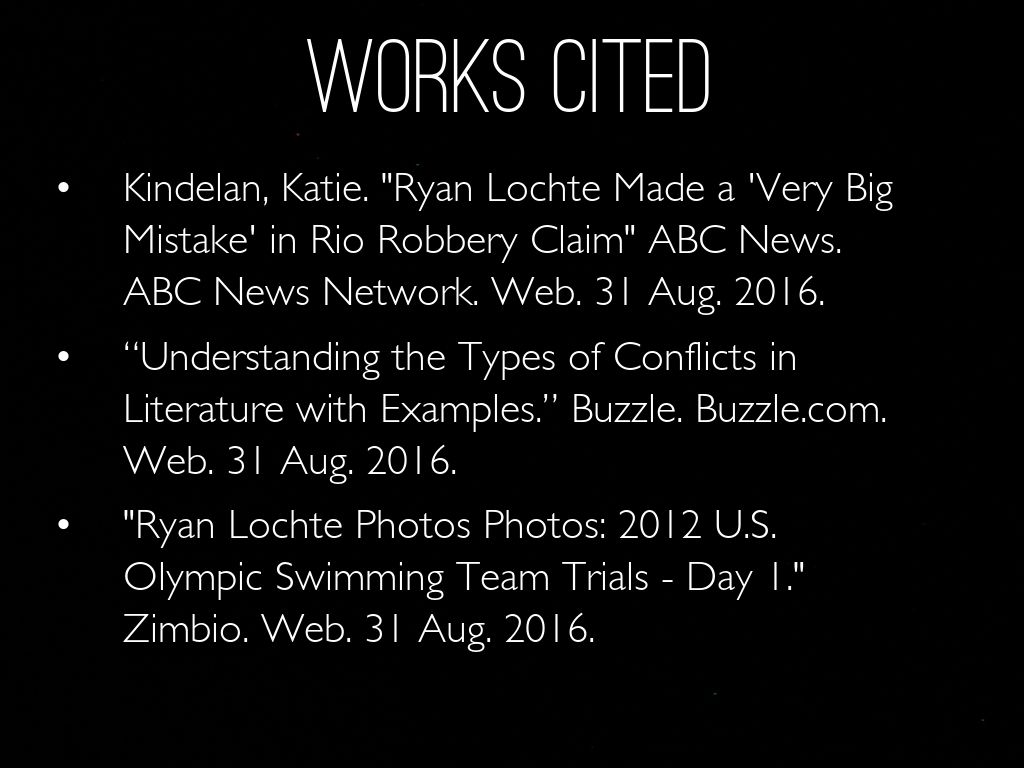 Kindelan, Katie. "Ryan Lochte Made a 'Very Big Mistake' in Rio Robbery Claim" ABC News. ABC News Network. Web. 31 Aug. 2016.