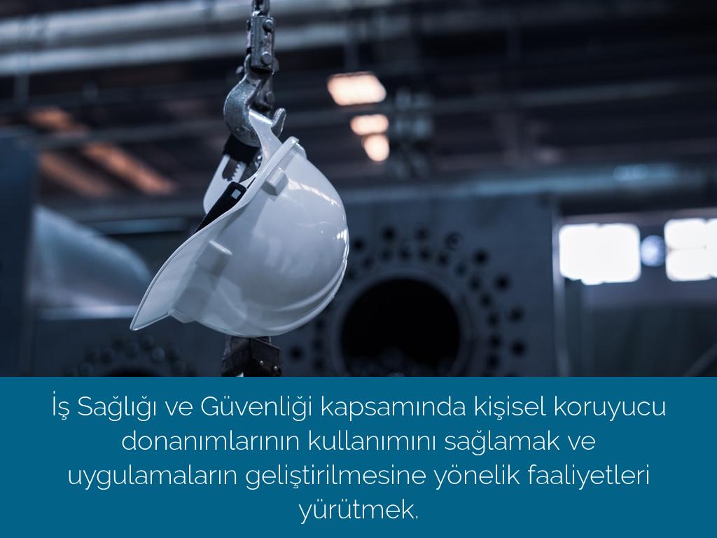 İş Sağlığı ve Güvenliği kapsamında kişisel koruyucu donanımlarının kullanımını sağlamak ve uygulamaların geliştirilmesine yönelik faaliyetleri yürütmek.
