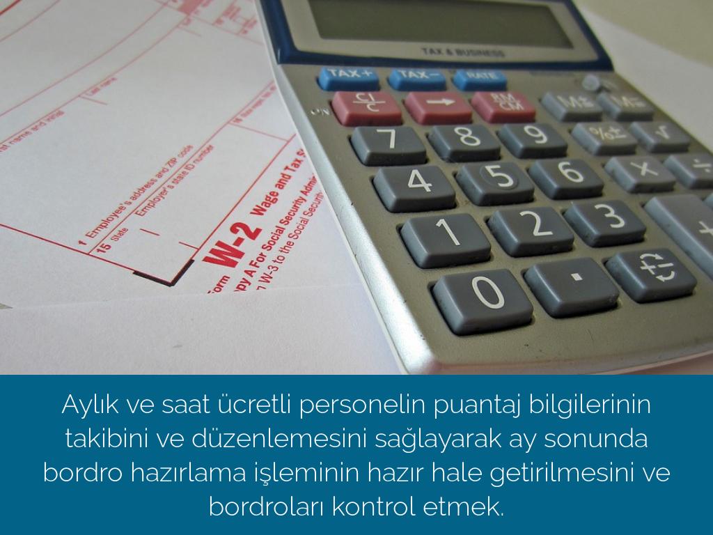Aylık ve saat ücretli personelin puantaj bilgilerinin takibini ve düzenlemesini sağlayarak ay sonunda bordro hazırlama işleminin hazır hale getirilmesini ve bordroları kontrol etmek.