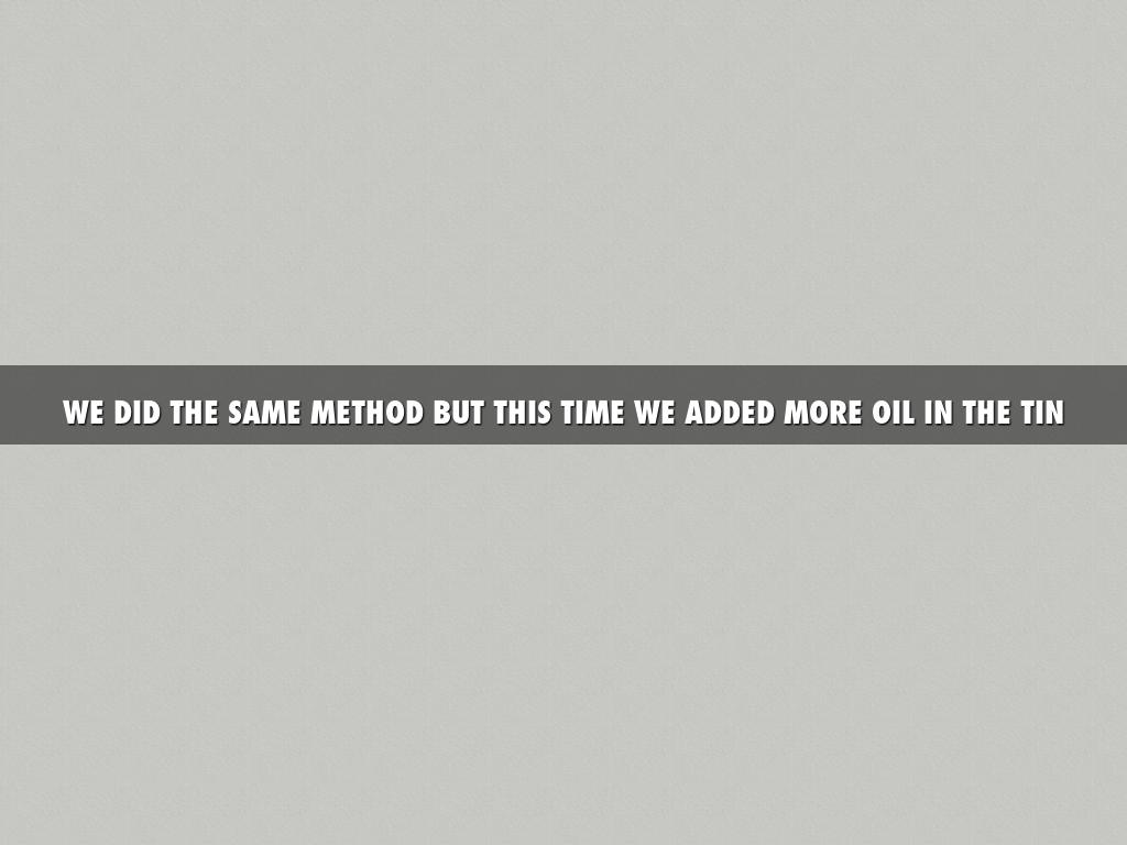 WE DID THE SAME METHOD BUT THIS TIME WE ADDED MORE OIL IN THE TIN