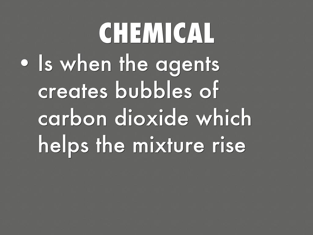 • Is when the agents creates bubbles of carbon dioxide which helps the mixture rise