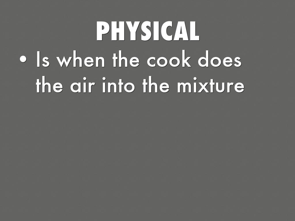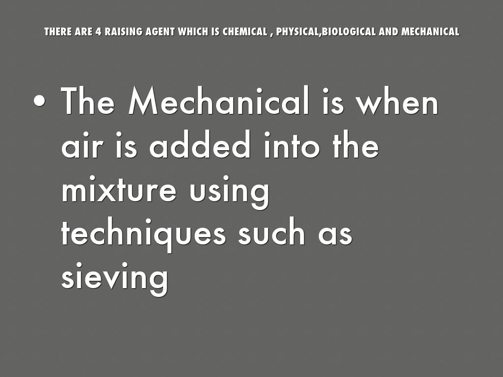 • The Mechanical is when air is added into the mixture using techniques such as sieving
