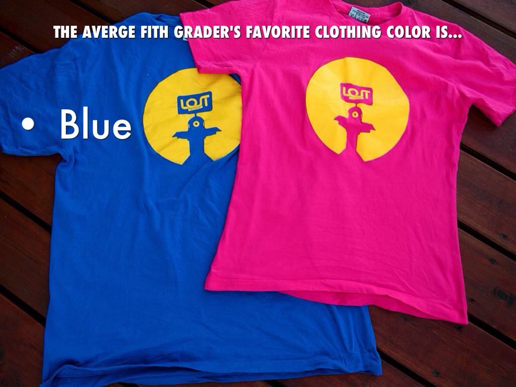 THE AVERGE FITH GRADER'S FAVORITE CLOTHING COLOR IS...