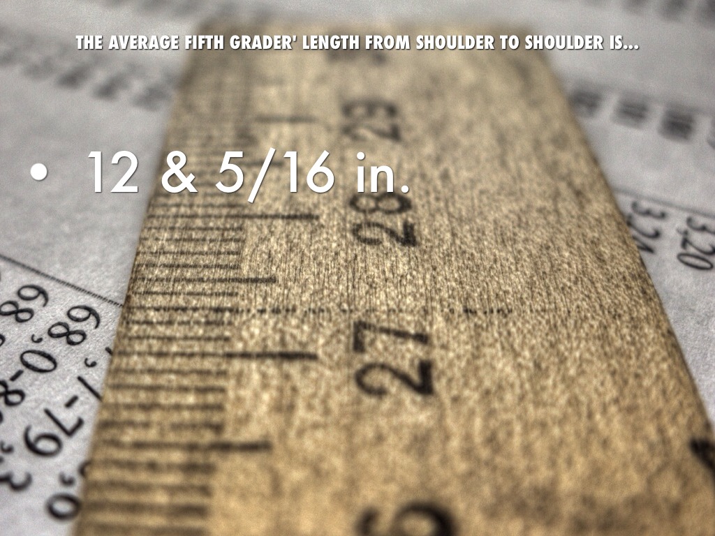 THE AVERAGE FIFTH GRADER' LENGTH FROM SHOULDER TO SHOULDER IS...