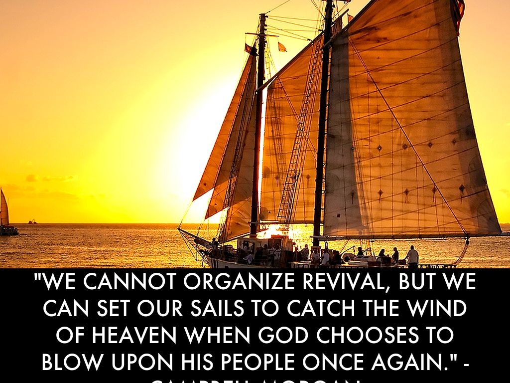 "WE CANNOT ORGANIZE REVIVAL, BUT WE CAN SET OUR SAILS TO CATCH THE WIND OF HEAVEN WHEN GOD CHOOSES TO BLOW UPON HIS PEOPLE ONCE AGAIN." - CAMPBELL MORGAN