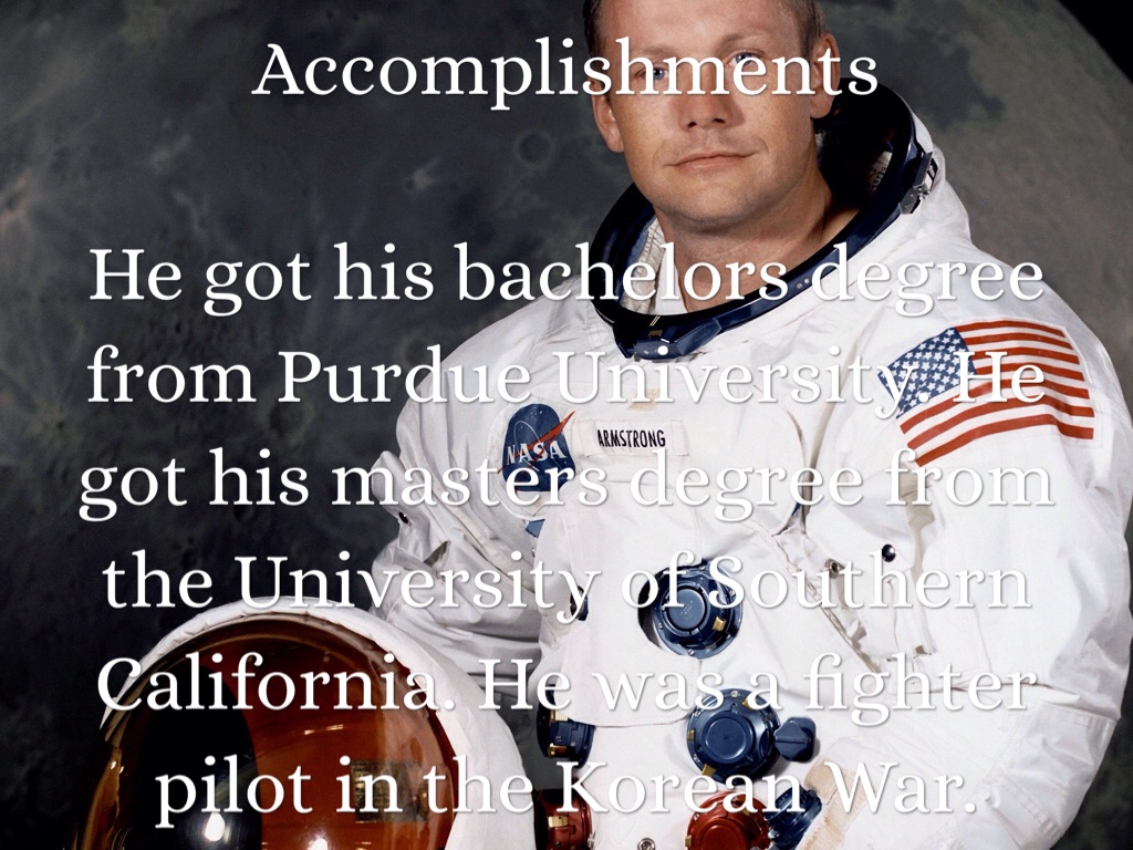 I picked Neil Armstrong because I like space and he was an astronaut and he studied space.