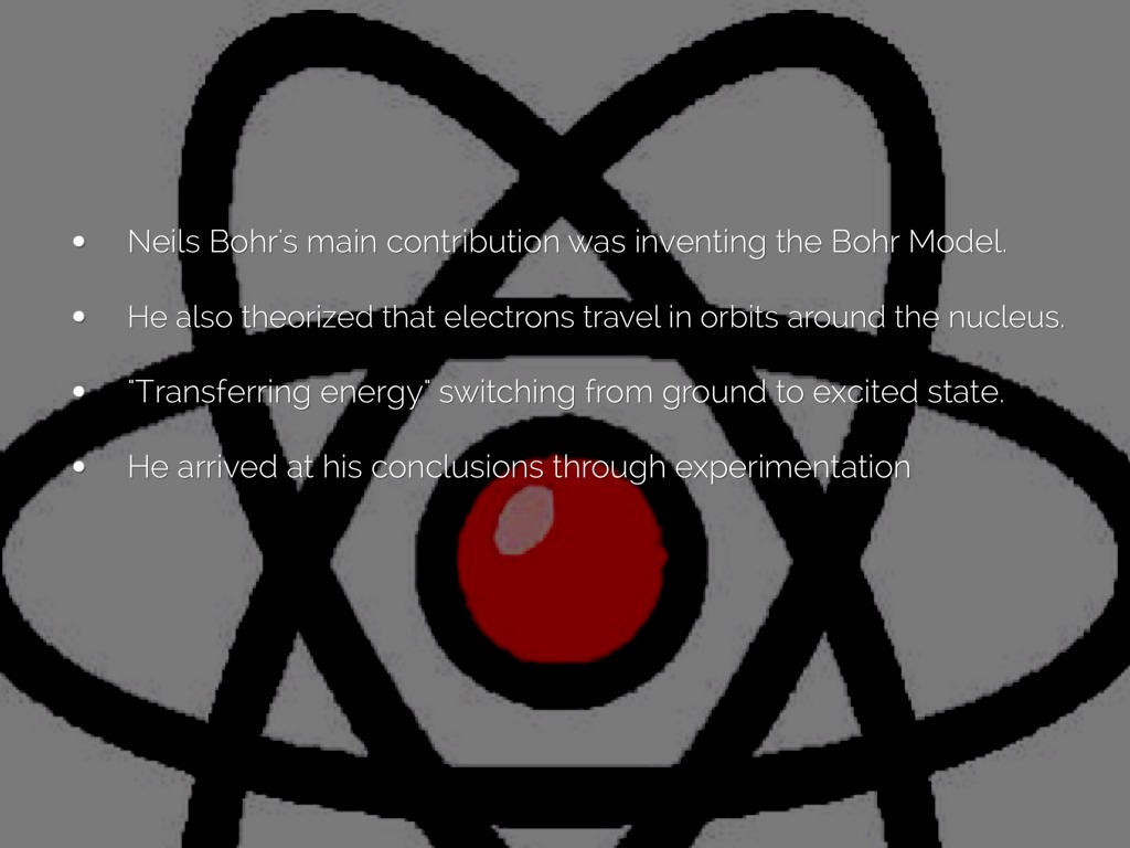 Neils Bohr's main contribution was inventing the Bohr Model.