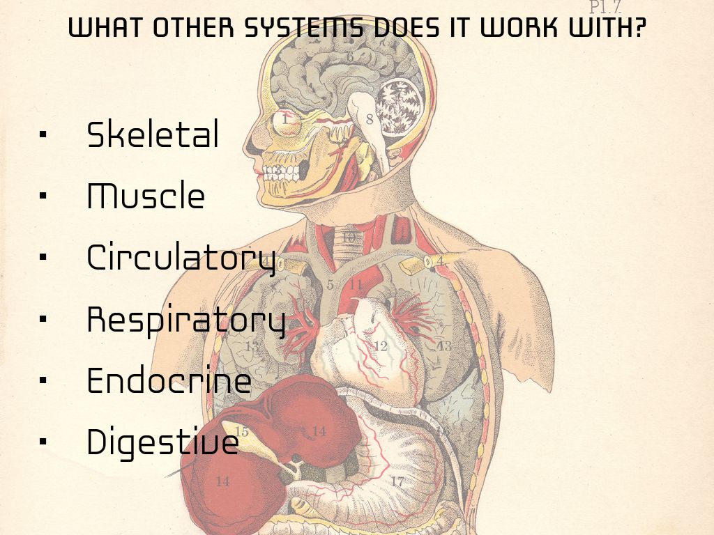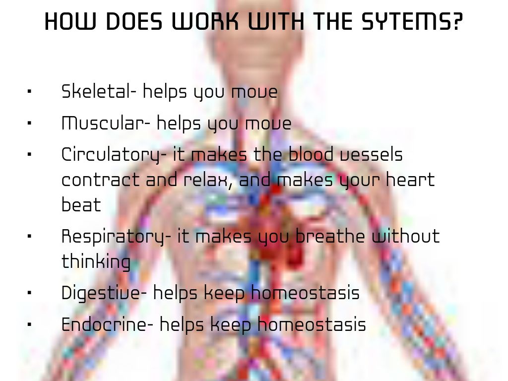 Circulatory- it makes the blood vessels contract and relax, and makes your heart beat