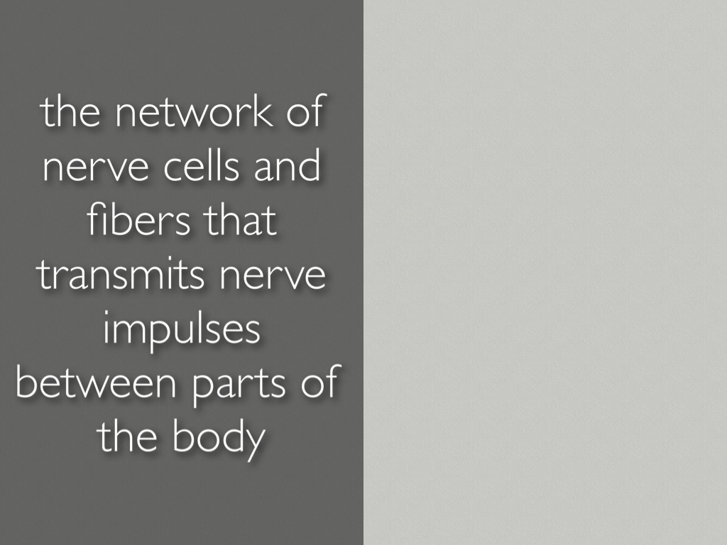 the network of nerve cells and fibers that transmits nerve impulses between parts of the body