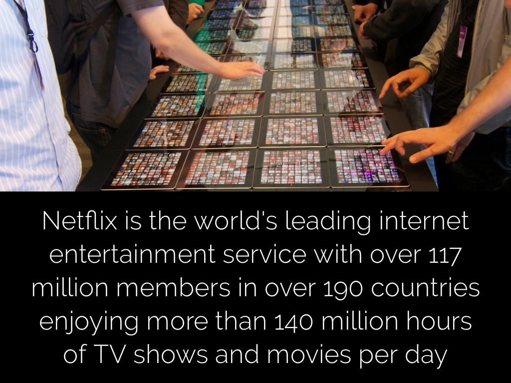 Netflix is the world's leading internet entertainment service with over 117 million members in over 190 countries enjoying more than 140 million hours of TV shows and movies per day