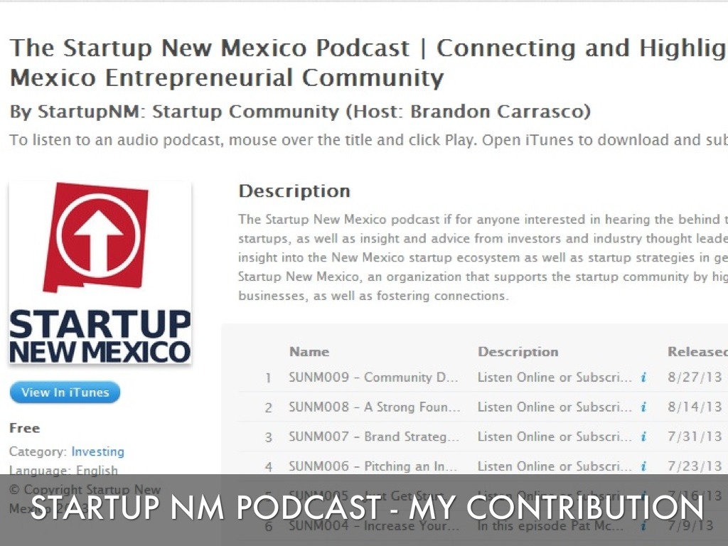 STARTUP NM PODCAST - MY CONTRIBUTION
