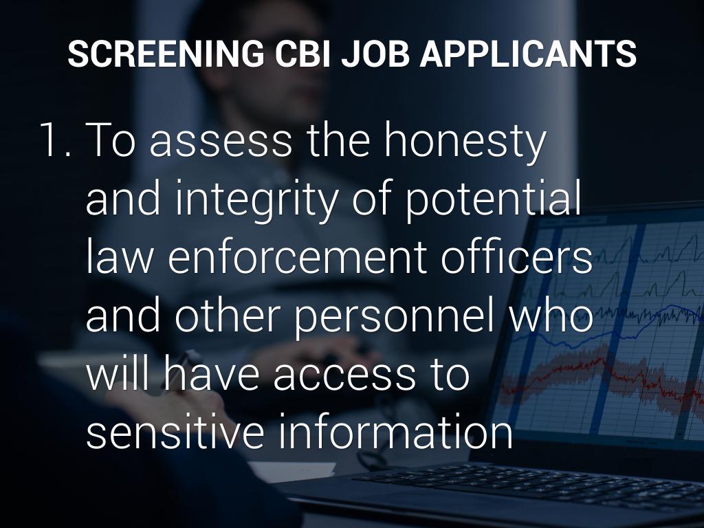 - To assess the honesty and integrity of potential law enforcement officers and other personnel who will have access to sensitive information