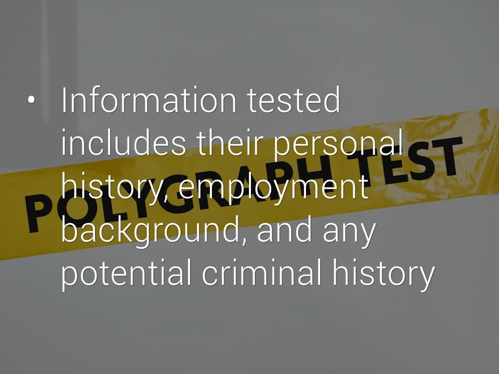 - Information tested includes their personal history, employment background, and any potential criminal history