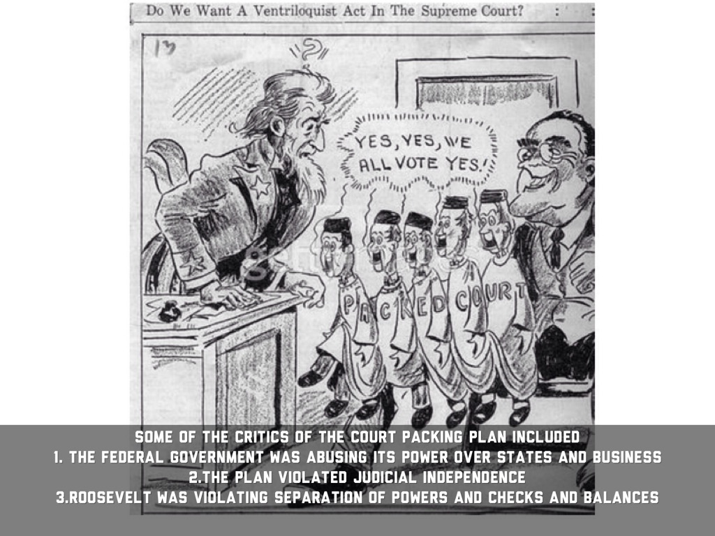 FDR's new deal brought on many different views and opinions. The various criticisms against Roosevelt and his new deal included his bringing of the court packing plan, the increases of taxes on businesses, and the problems against republicans and rugged individualists.