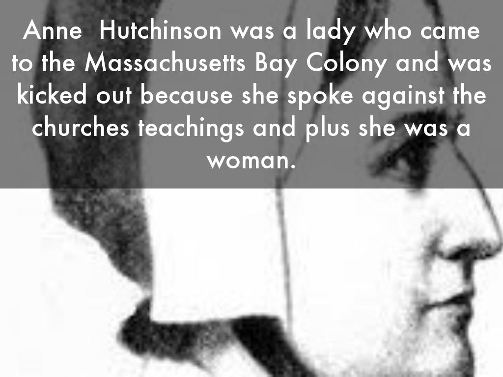 Anne Hutchinson was a lady who came to the Massachusetts Bay Colony and was kicked out because she spoke against the churches teachings and plus she was a woman.