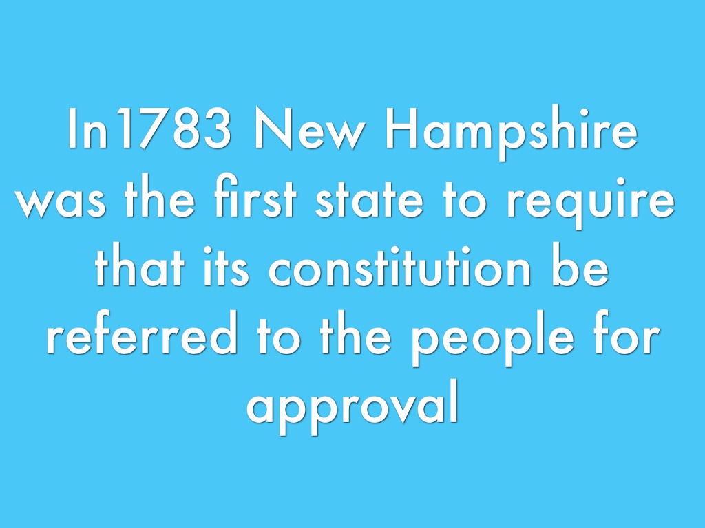In1783 New Hampshire was the first state to require that its constitution be referred to the people for approval