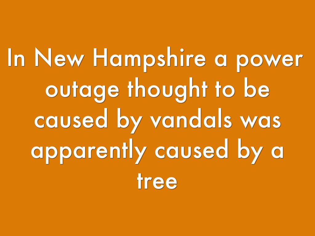 In New Hampshire a power outage thought to be caused by vandals was apparently caused by a tree