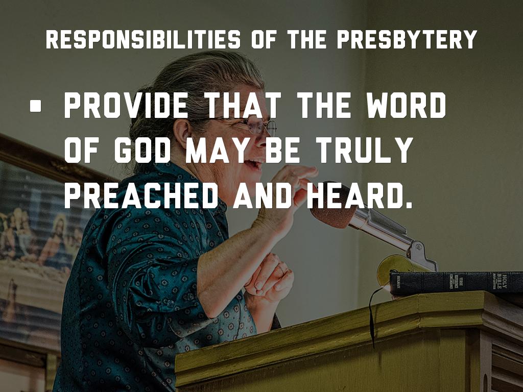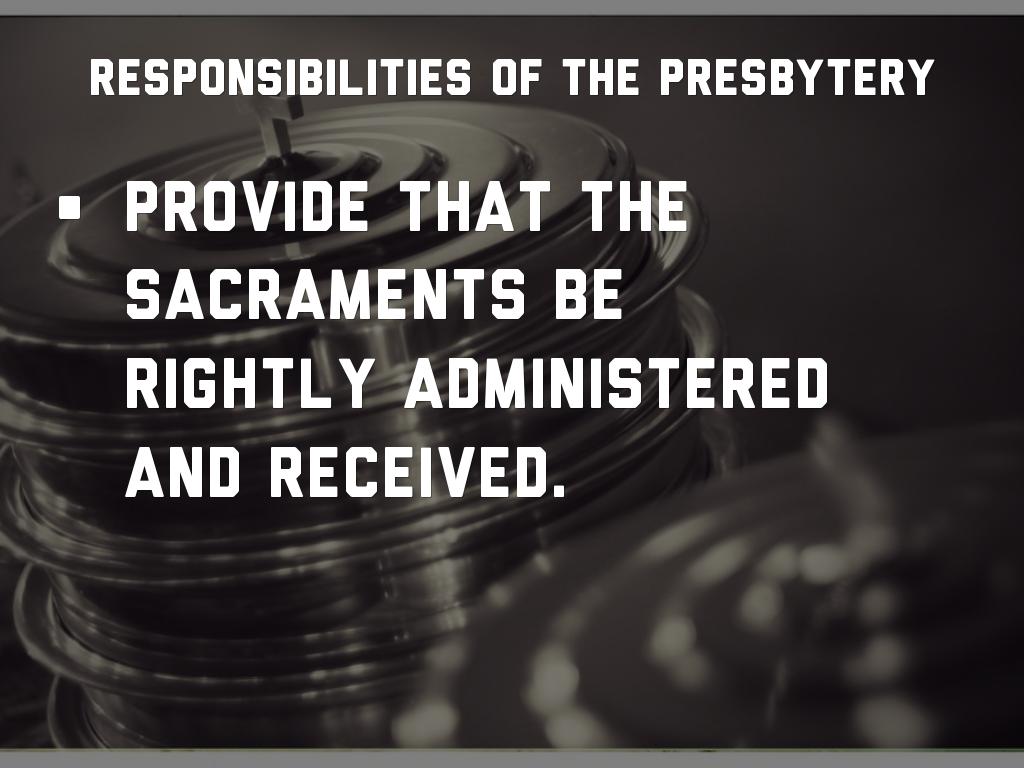 - maintain regular and continuing relationships with higher councils: synod and General assembly.
