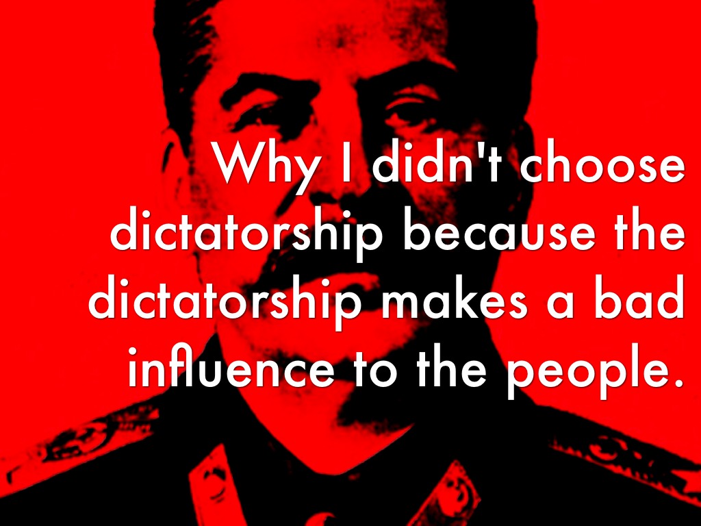 Why I didn't choose dictatorship because the dictatorship makes a bad influence to the people.