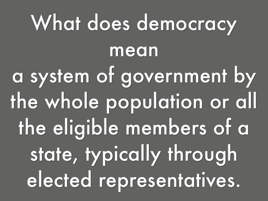a system of government by the whole population or all the eligible members of a state, typically through elected representatives.