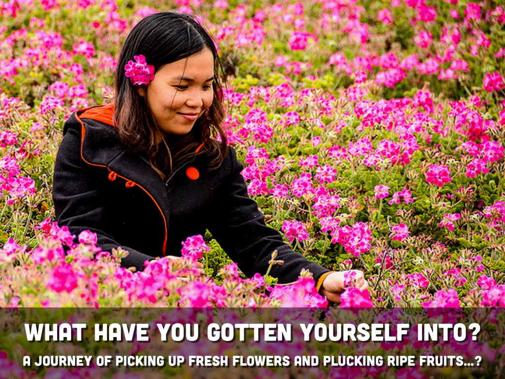 A journey of picking up fresh flowers and plucking ripe fruits...?