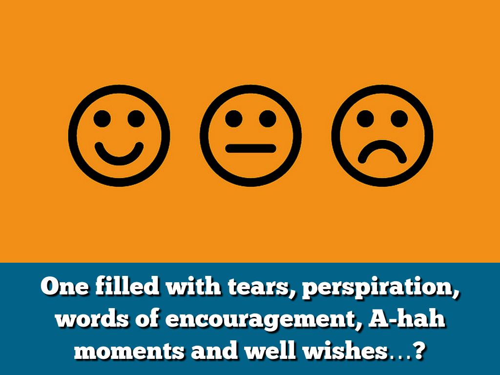 One filled with tears, perspiration, words of encouragement, A-hah moments and well wishes…?