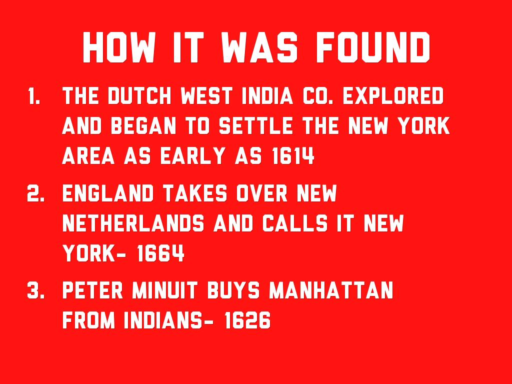 the Dutch West India Co. explored and began to settle the New York area as early as 1614