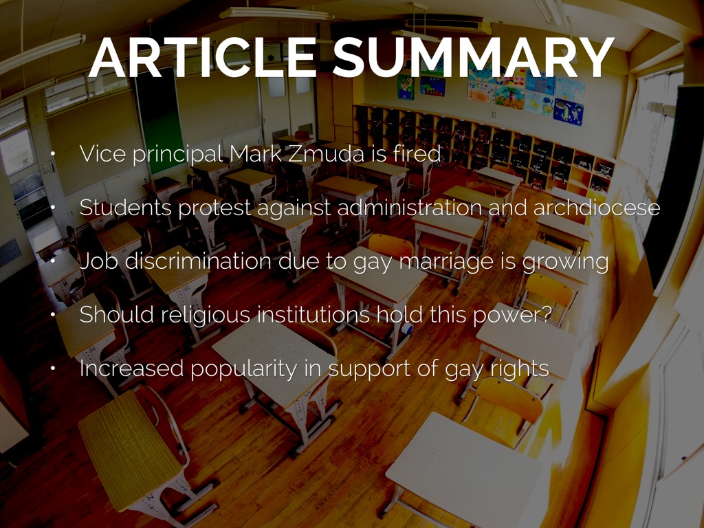 GAY MARRIAGE CONFRONTS CATHOLIC SCHOOL RULE