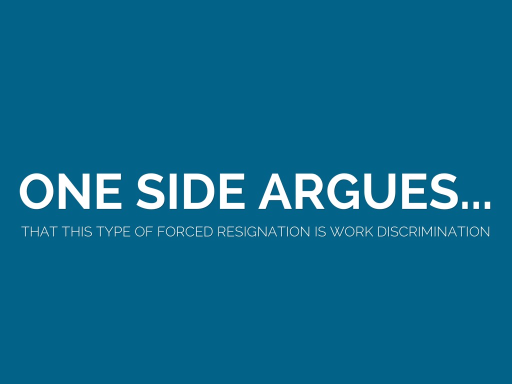 THAT THIS TYPE OF FORCED RESIGNATION IS WORK DISCRIMINATION