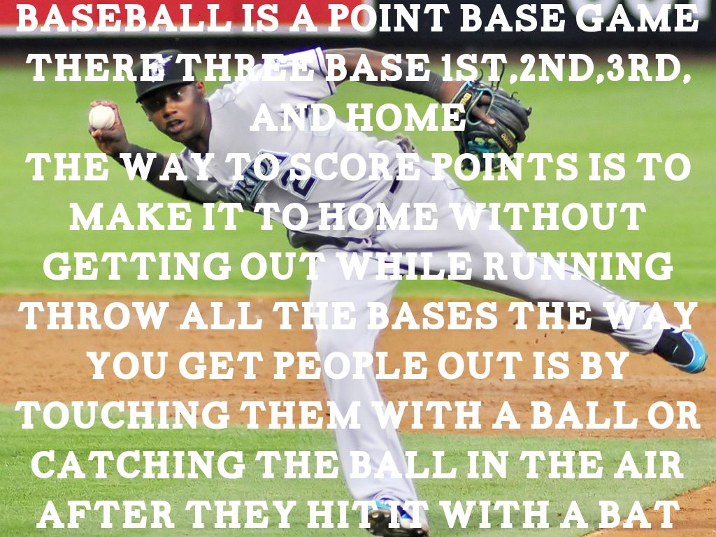 Baseball is a point base game there three base 1st,2nd,3rd, and home