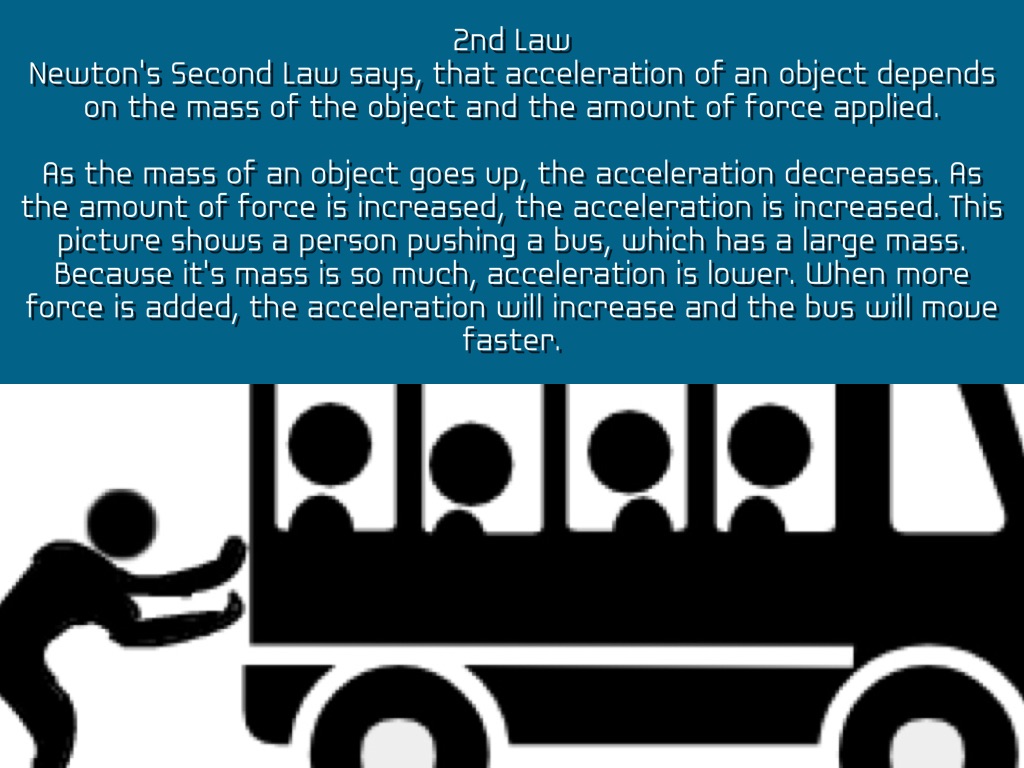 Newton's Second Law says, that acceleration of an object depends on the mass of the object and the amount of force applied.