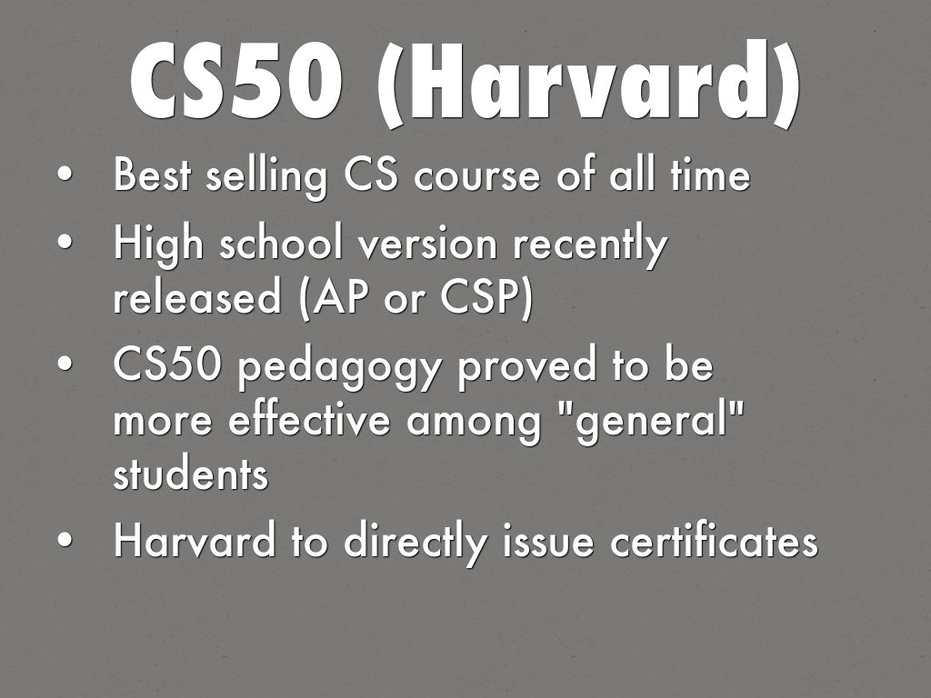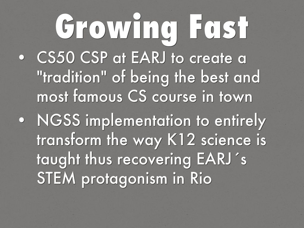 • CS50 CSP at EARJ to create a "tradition" of being the best and most famous CS course in town