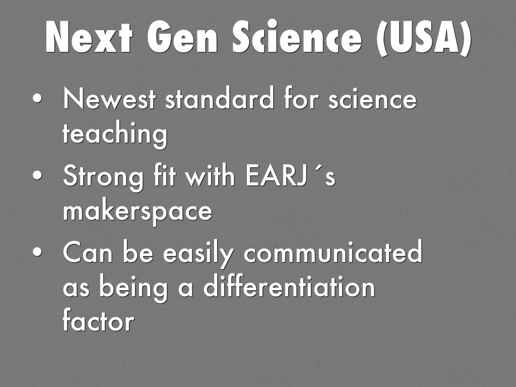 • NGSS implementation to entirely transform the way K12 science is taught thus recovering EARJ´s STEM protagonism in Rio